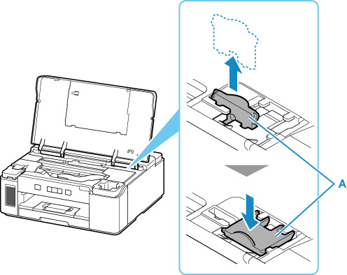Deschideţi capacul superior şi trageţi opritorul carului (A) drept în sus.