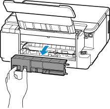 Dacă nu aţi putut să scoateţi hârtia la acest pas, detaşaţi capacul unităţii de transport şi scoateţi hârtia urmând aceşti paşi.