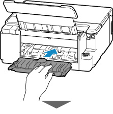 Deschideţi capacul tăvii din spate, apoi trageţi în sus suportul pentru hârtie.