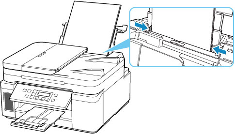 Aliniaţi ghidajele pentru hârtie ale tăvii din spate, cu ambele margini ale hârtiei.