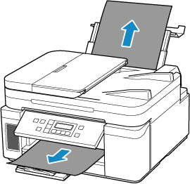Dacă hârtia alimentată din tava din spate este blocată, scoateţi hârtia blocată din fanta de ieşire a hârtiei sau din tava din spate, urmând instrucţiunile de mai jos.