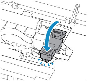 Important- Împingeţi ferm butonul de îmbinare, până când acestea se fixează pe poziţie cu un clic; în caz contrar, imprimarea poate deveni imposibilă.