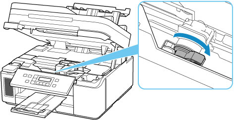 Înclinaţi pârghia supapei de cerneală complet spre stânga.