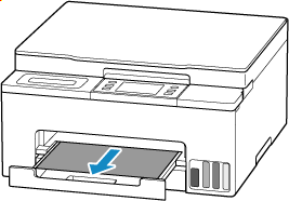 • إذا لم تتمكن من سحب الورق إلى الخارج، فقم بتشغيل الطابعة مرة أخرى دون السحب بقوة. قد يخرج الورق تلقائيًا.
