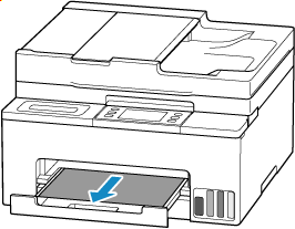 Retrageți tava de ieșire a hârtiei, apoi verificați dacă hârtia blocată este vizibilă în fantă de alimentare a casetei.