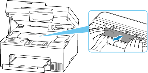 Εάν σκιστεί το χαρτί καθώς το τραβάτε προς τα έξω, μπορεί να παραμείνει κάποιο μικρό κομμάτι χαρτιού μέσα στον εκτυπωτή. Ελέγξτε τα παρακάτω και αφαιρέστε τυχόν χαρτί που έχει απομείνει στο μηχάνημα.