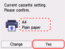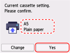Verificați informațiile despre hârtie (dimensiunea hârtiei și tipul de suport) și selectați Da (Yes).