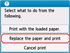 Selectați Înlocuire hârtie şi imprimare (Replace the paper and print).