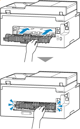Notă- Nu atingeţi părţile interioare ale imprimantei.