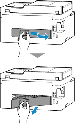 Dacă nu puteți să scoateți hârtia blocată, urmați pașii de mai jos pentru a detașa unitatea de transport, apoi scoateți hârtia.