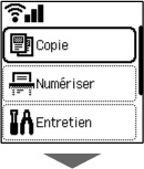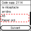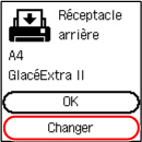 Sélectionnez Changer avec les boutons hautbas de l'imprimante et appuyez sur le bouton OK, puis enregistrez correctement les informations sur le papier (format de papier et type de support) chargé dans le réceptacle arrière de l'imprimante.