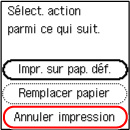 2. Sélectionnez Annuler impression avec les boutons hautbas de l'imprimante et appuyez sur le bouton OK.