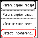 3. Sélectionnez Détect. incohérence param. pap. et appuyez sur le bouton OK.