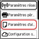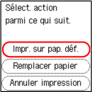 • En fonction des paramètres de voter imprimante, le message Impr. sur pap. déf. pourrait ne pas s'afficher.