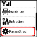 1. Utilisez les boutons hautbas de l'imprimante pour faire défiler l'écran ACCUEIL (HOME) de l'imprimante et sélectionnez Paramètres, puis appuyez sur le bouton OK.