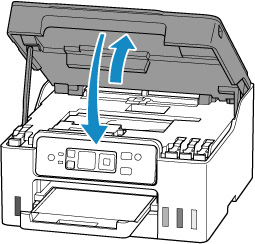 لإغلاق وحدة المسح الضوئي / الغطاء، ارفعها لأعلى قليلًا، ثم اخفضها برفق.