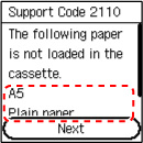 Указана е несъвместима комбинация от настройки за печат на хартията, заредена в касетата.