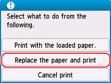Odaberite mogućnost Zamijenite papir i ispišite (Replace the paper and print).