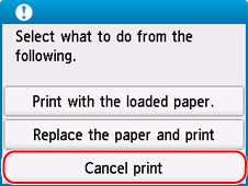 Välj Ersätt papper och skriv ut (Replace the paper and print).