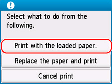 Välj Skriv ut med papper ilagt. (Print with the loaded paper.)