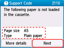 Sjekk papirinformasjonen (papirstørrelse og medietype).