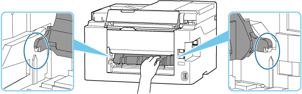 Importante- Se si reinserisce l'unità di trasporto senza abbassare le parti (A) rivolgendole verso di sé, la stampante potrebbe danneggiarsi.