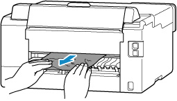 Uvíznutý papír uchopte pevně oběma rukama a pomalu jej vytáhněte.