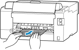 Halten Sie das gestaute Papier mit beiden Händen fest und ziehen Sie es langsam heraus.