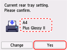 Periksa informasi kertas (ukuran kertas dan tipe media) dan pilih Ya(Yes).