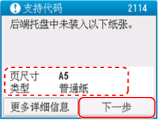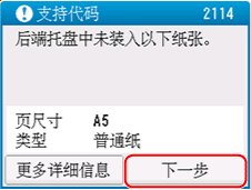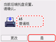 例如,在装入后端托盘的纸张与打印机中注册的纸张信息不一致时,要继续打印,请按照以下步骤操作。