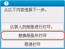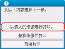 • 根据打印机设置的不同,“以装入的纸张进行打印。”可能不会出现。