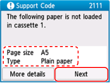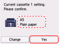 Verificați informațiile despre hârtie (dimensiunea hârtiei și tipul de suport) și selectați Da (Yes).