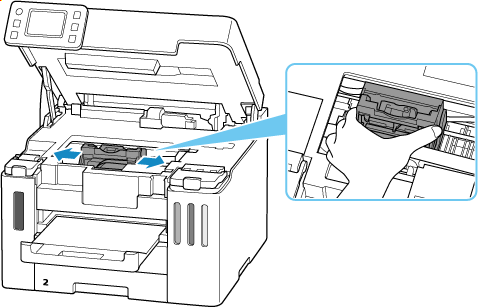 Când deplasați suportul capului de imprimare, țineți de suportul capului de imprimare și glisați-l încet spre extrema dreaptă sau stângă.