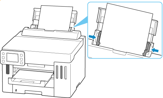 Aliniaţi ghidajele pentru hârtie ale tăvii din spate, cu ambele margini ale hârtiei.