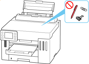 - Când verificaţi tava din spate sau scoateţi orice obiecte străine, nu răsturnaţi imprimanta şi nu o înclinaţi. Cerneala se poate scurge.