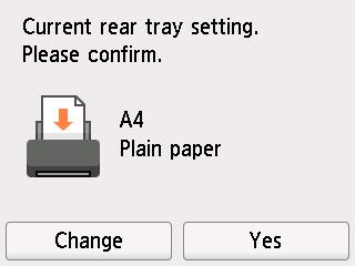 Če se papir, naložen v zadnji pladenj ujema z informacijami o papirju, prikazanimi na zaslonu na dotik tiskalnika izberite Da (Yes).