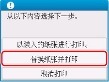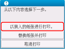 注释- 根据打印机设置的不同,“以装入的纸张进行打印。”可能不会出现。