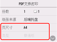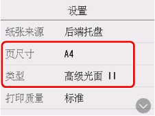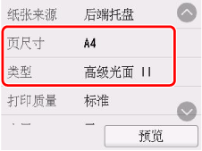 指定在第4步中检查过的纸张信息(纸张尺寸和介质类型)。