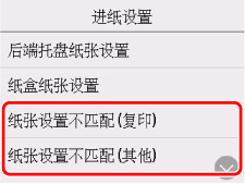 选择纸张设置不匹配(复印)或纸张设置不匹配(其他)。