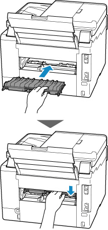 Pastaba- Jei klaida 1300 pasikartoja, dar kartą patikrinkite galinio dėklo tiekimo angą. Jei galiniame dėkle yra pašalinis objektas, žr. 1 patikrinimas dalyje Ką daryti, jei popierius netiekiamas / neišleidžiamas įprastai ir imkitės atitinkamų veiksmų.