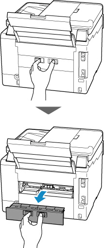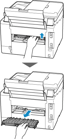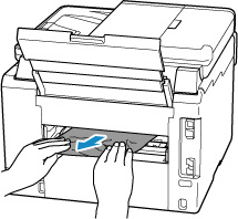 Įstrigusio popieriaus ištraukimas iš galinės spausdintuvo pusės
