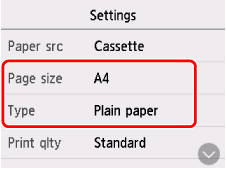 Selectaţi Nepotriv. setări hârtie (Copiere) (Paper settings mismatch (Copy)) sau Nepotriv. setări hârtie (Altele) (Paper settings mismatch (Other)).
