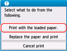 Vyberte možnost Vyměnit papír a tisknout (Replace the paper and print).