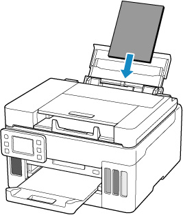 In den Druckeinstellungen angegebenes Papier in das hintere Fach einlegen.