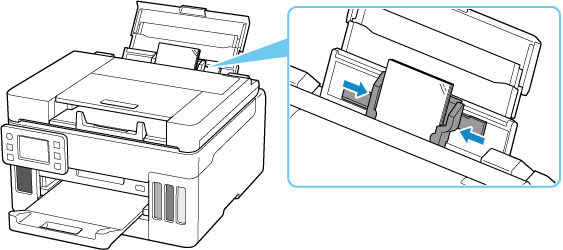 Allineare le guide della carta del vassoio posteriore con entrambi i lati della carta.