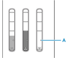 Etterfyll blekk for hver farge slik at nivået er over det enkelte punktet (A) som vises i hver blekktank, og prøv deretter rengjøringen på nytt Rengjør (Cleaning) eller Erstatt blekk i skrivehodet (Replace Ink in Print Head).