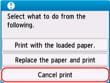 Yazdırma iptal (Cancel print) seçeneğini belirleyin.