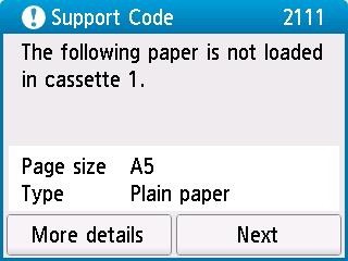 Якщо параметри паперу, зазначені під час друку, відрізняються від відомостей про папір у касеті 1, зареєстрованих на принтері, на сенсорному екрані принтера відобразиться наведене нижче повідомлення.