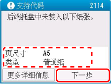 指定在第4步中检查过的纸张信息(纸张尺寸和介质类型)。