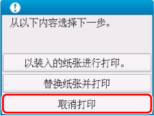 注释- 根据打印机设置的不同,“以装入的纸张进行打印。”可能不会出现。